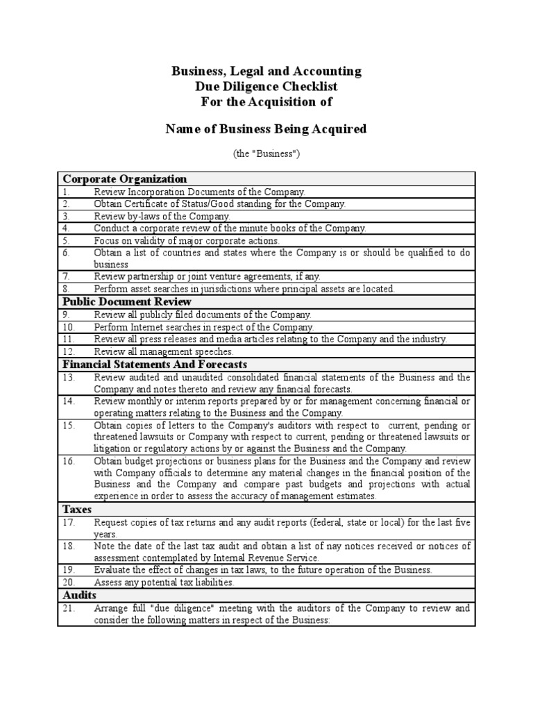 Legal Due Diligence Report Sample Pdf. Sample Topics. • What are each IT groups' responsibilities? • Is there a succession plan or cross training in place for. The ILPA Due Diligence Questionnaire ("ILPA DDQ") was compiled from over a dozen sample questionnaires provided by LPs, GPs and third parties.