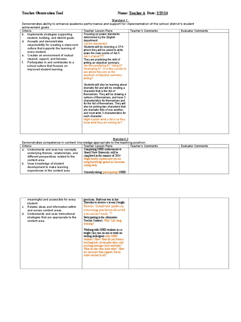 Lesson Plan Observation Form. Student Teacher: Observer: Subject: Preparation for Lesson/Observation Visit ☐. Directions: This form is to be used for probationary teachers and teachers with continuing contract status. · Aligns lesson objectives to the school's curriculum and student learning needs. · Develops appropriate long- and short-range plans and adapts plans.